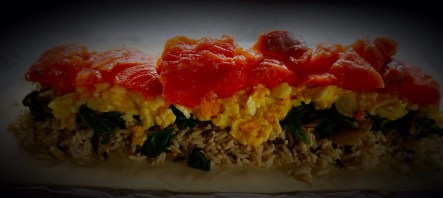 Now you have all your coulibiak ingredients ready. Let’s fill it: