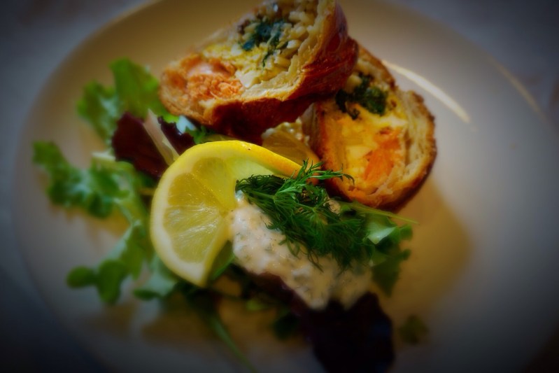 Long and cold winter in Finland. You need food that warms you up. I remember my mother making this quite often during the wintertime when we had guests over. Coulibiac has become one of our family’s everyday foods. We love to eat fish, which is a slightly different way of doing it. It is also a wonderful dish when you have guests coming over. You can prepare it ahead and just bake it when your guests have arrived. It also relatively easy to adjust for vegetarians by using mushrooms and other vegetables in the filling.