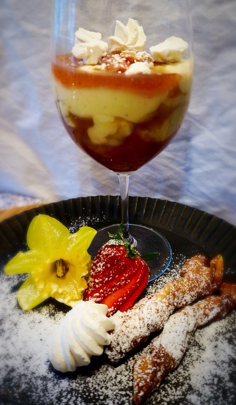 - Spoon the custard over the rhubarb, then the cream, and finish off with the reserved rhubarb and a drizzle of the syrupy juices.