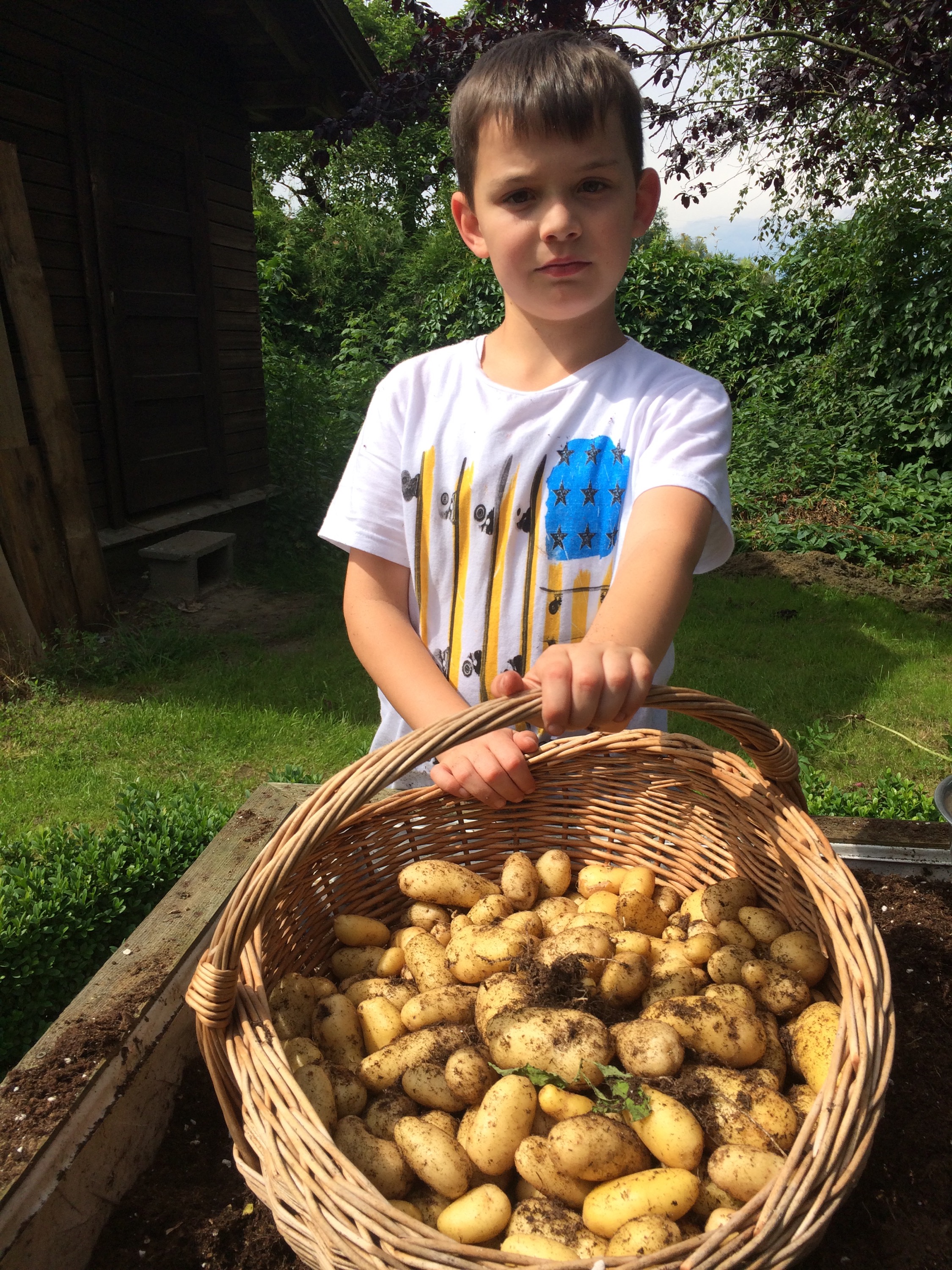 Potatoes,potatoes and child labour.Kiddo working his way out of being grounded..!