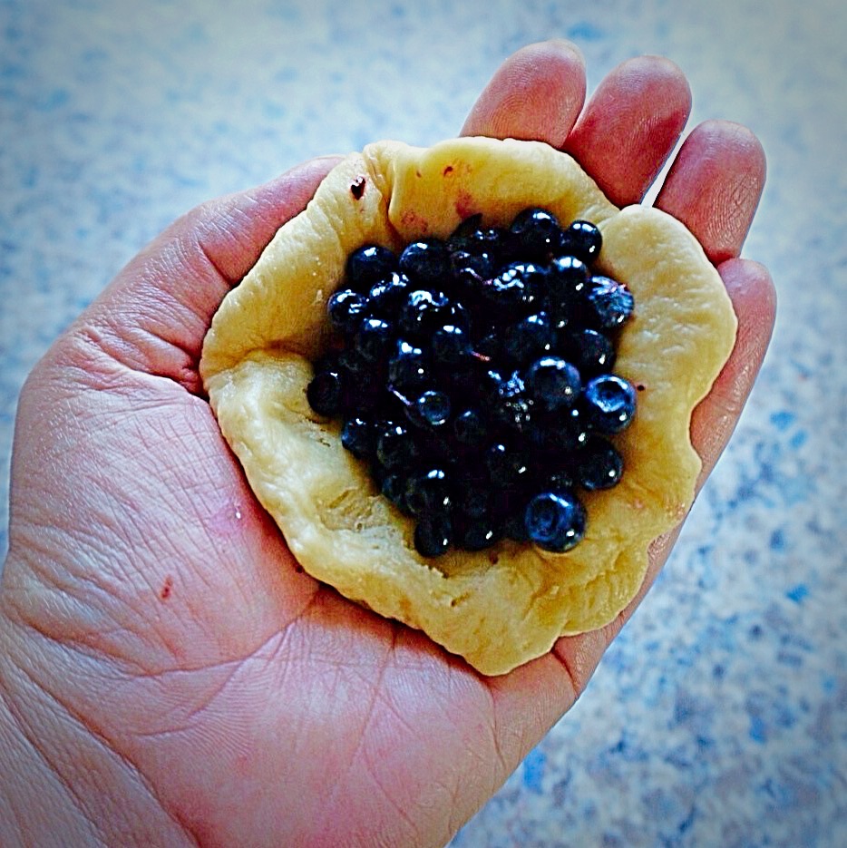 Eating Buchteln, was my first memory of Austria. We were high up in the mountains, and this traditional dish was served in Gasthaus as main course. Buchteln’s are filled with apricot jam and served with vanilla sauce. They are usually huge and fluffy! And taste divine. So here you go. My Buchteln. Instead of the traditional apricot marmalade I used fresh bilberries.