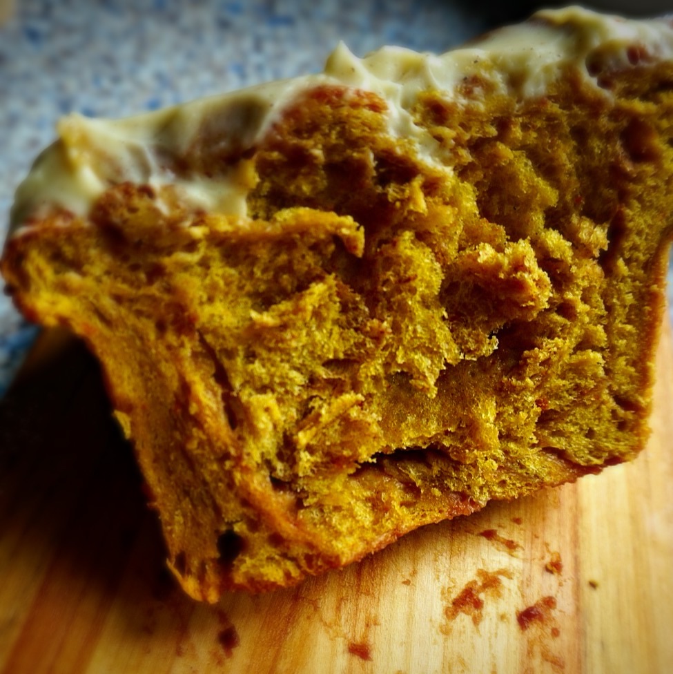 To make the dough, combine the whole milk and butter. Heat it up in microwave or in kettle until butter has melted,do not boil!Allow the mixture to return to hand temperature. Sprinkle in the yeast and ½ tbsp. of the brown sugar. Let the mixture sit for 5-7 minutes or until bubbly.Mix on low while gradually adding the liquid ingredients and the remaining flour.Add rest of the flour, the remaining sugar, the pumpkin puree, salt and pumpkin pie spice into the mixture. Once a soft dough forms switch to the dough hook and knead for 6-8 minutes. Place the ball of dough into a well buttered bowl covered with plastic wrap. Allow to rise until doubled.