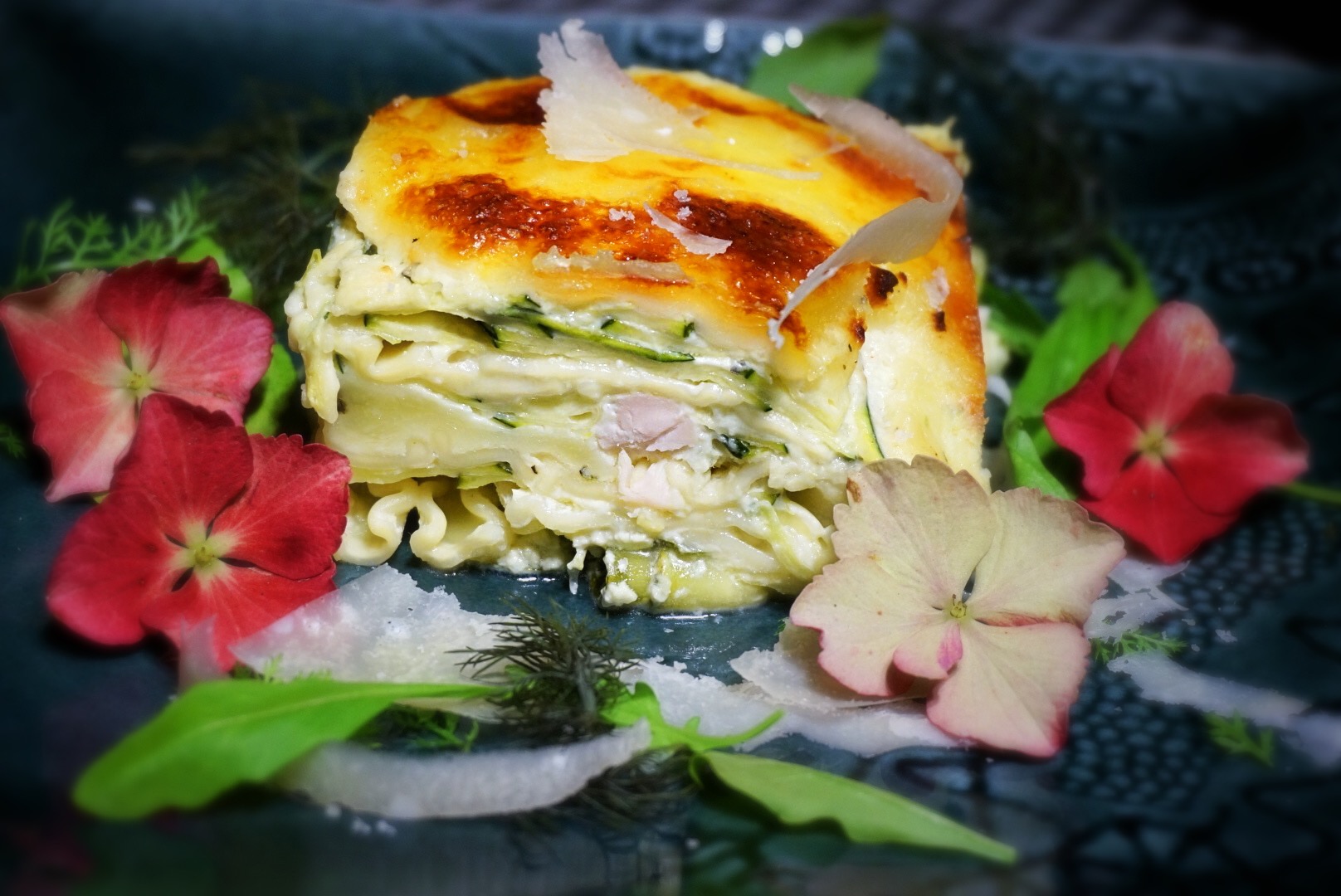 Simple and fast recipe for family dinner. Here you my Baked Zucchini and Chicken Alfredo: