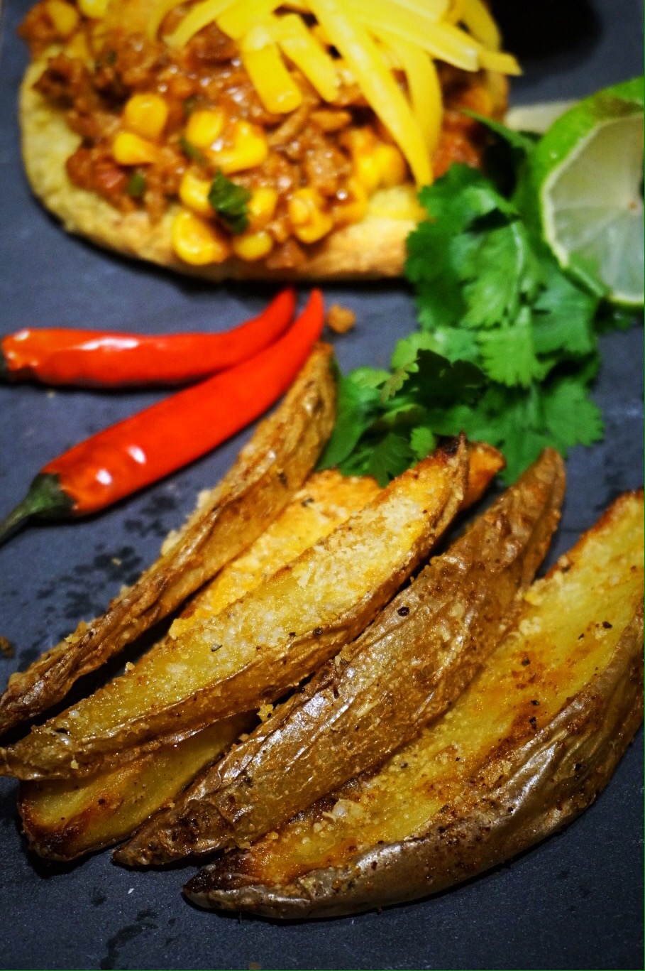 And the Parmesan Fries? Well I needed a side dish something more on the healthy, less fatty side. I do my fries in oven. Sometimes I use sweet potatoes or root vegetables. Easy way to cheat Kiddo eating something different. Today I gave a try to Parmesan. Wau!! The result… So good!!! These are going to be one of our families favourites to cook.