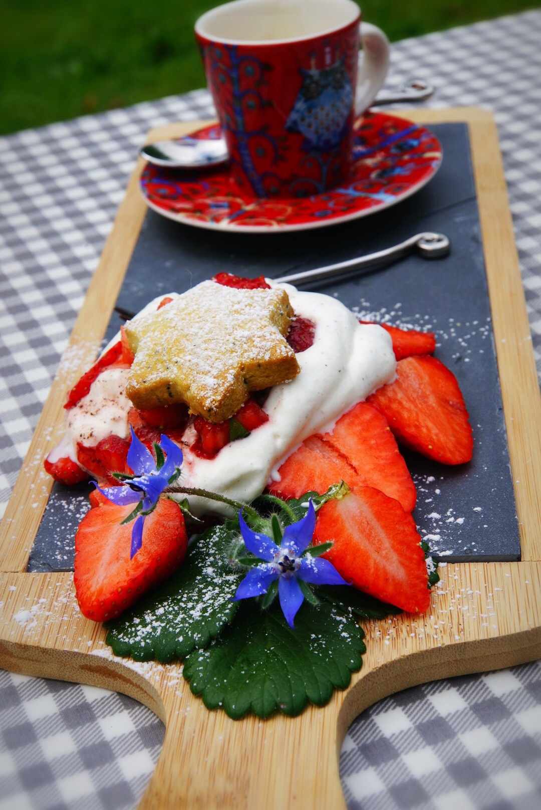 When I was in the USA as exchange student ages ago, I fell in love with Strawberry Shortcake. There was a great restaurant in Springfield MO, where to my family went always for Sunday lunch. They served this wonderful pie which was so crispy but filled with this ooey-gooey strawberry mixture and topped with whipped cream. Oh boy! I am still drooling while thinking of it!