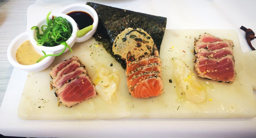 Dinner we had in place called Visch..Because I am a foodie from my heart and soul we ate local food and seafood. Yes,seafood.. How I miss high quality seafood here in Austria. My first choice was sashimi from Salmon and Tuna fish.