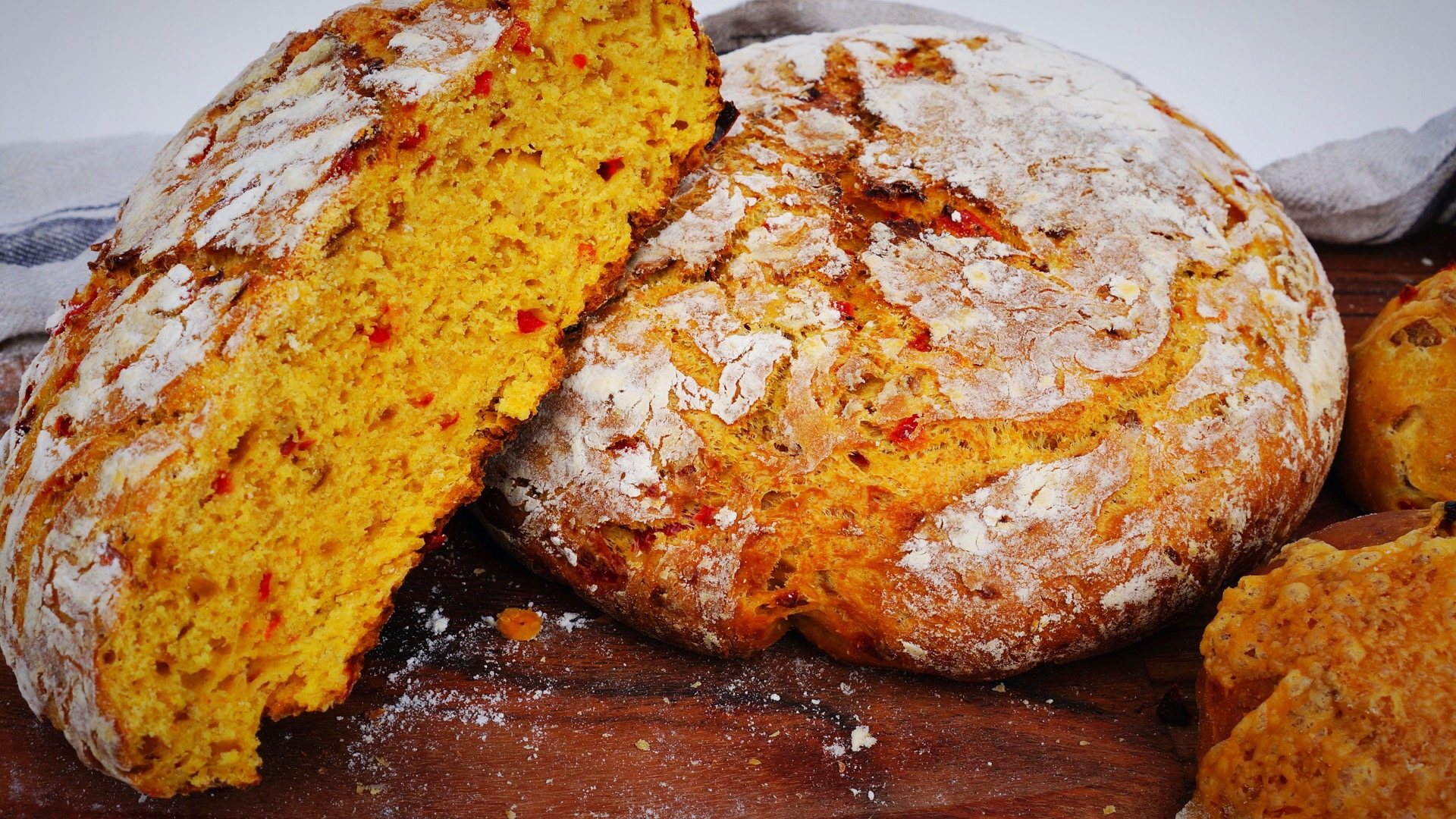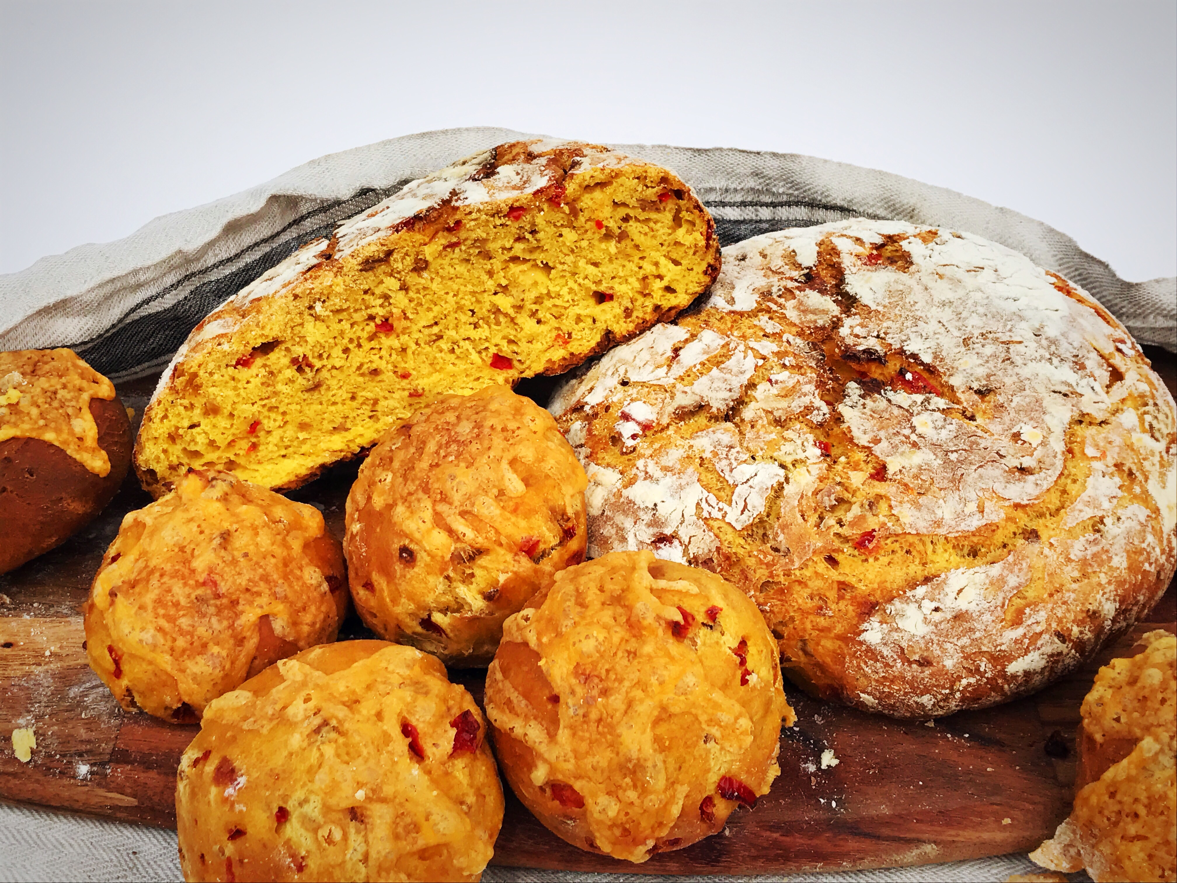 I use a Kitchenaid to mix the dough. You can do this by hand, too, but it might be a good idea to wear rubber gloves because of the jalapeno and turmeric. So, let’s go and bake the bread. This recipe will give you three loaves of bread. You can also make bread rolls, if you like, to be used for burgers.