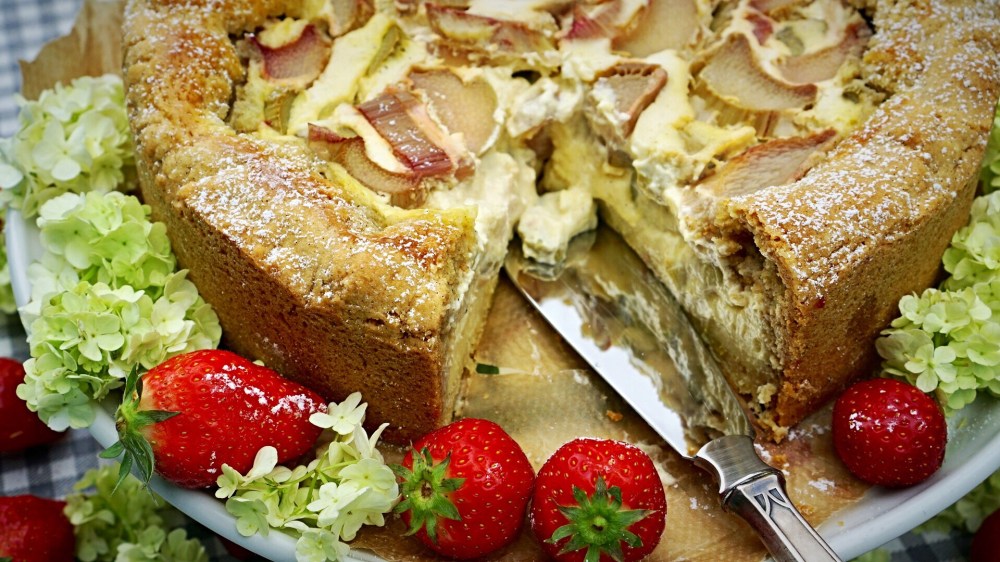 Rhubarb season is in full swing, and last week, the first local Austrian strawberries came into the market. I had to do something yummy with both of them together. This is the result. My hubby and neighbor approved it. Summer welcome and all the beautiful flavors that go with it!