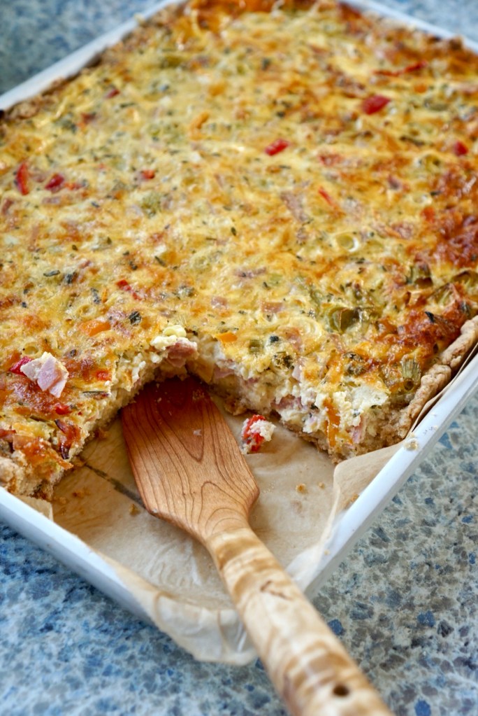 You can vary the flour in the crust as you wish. I like using rye flour with parmesan or Bergkäse. Whole Wheat Spelt is also one of my favorites. Try different spices in the crust. Cummin tastes really good with strong cheese. Just keep the ingredient amounts the same. Be creative! Filling the same thing. Keep the ratio of fluids and eggs, otherwise feel free experimenting with different fluids and cheeses. I mix usually at least two different kids of cheeses together for the filling.