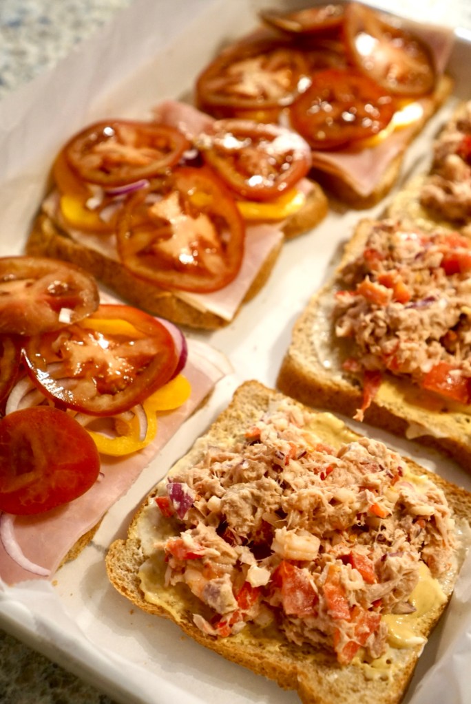 This is an excellent food because combination possibilities are endless. One of the most popular ones in Finland is ham, tomato, and cheese. I listed some filling recipes underneath just as an idea of what you could use. I make these sandwiches by opening the fridge and looking at what I have there that I could use. I usually end up using leftovers that I have just a little bit.