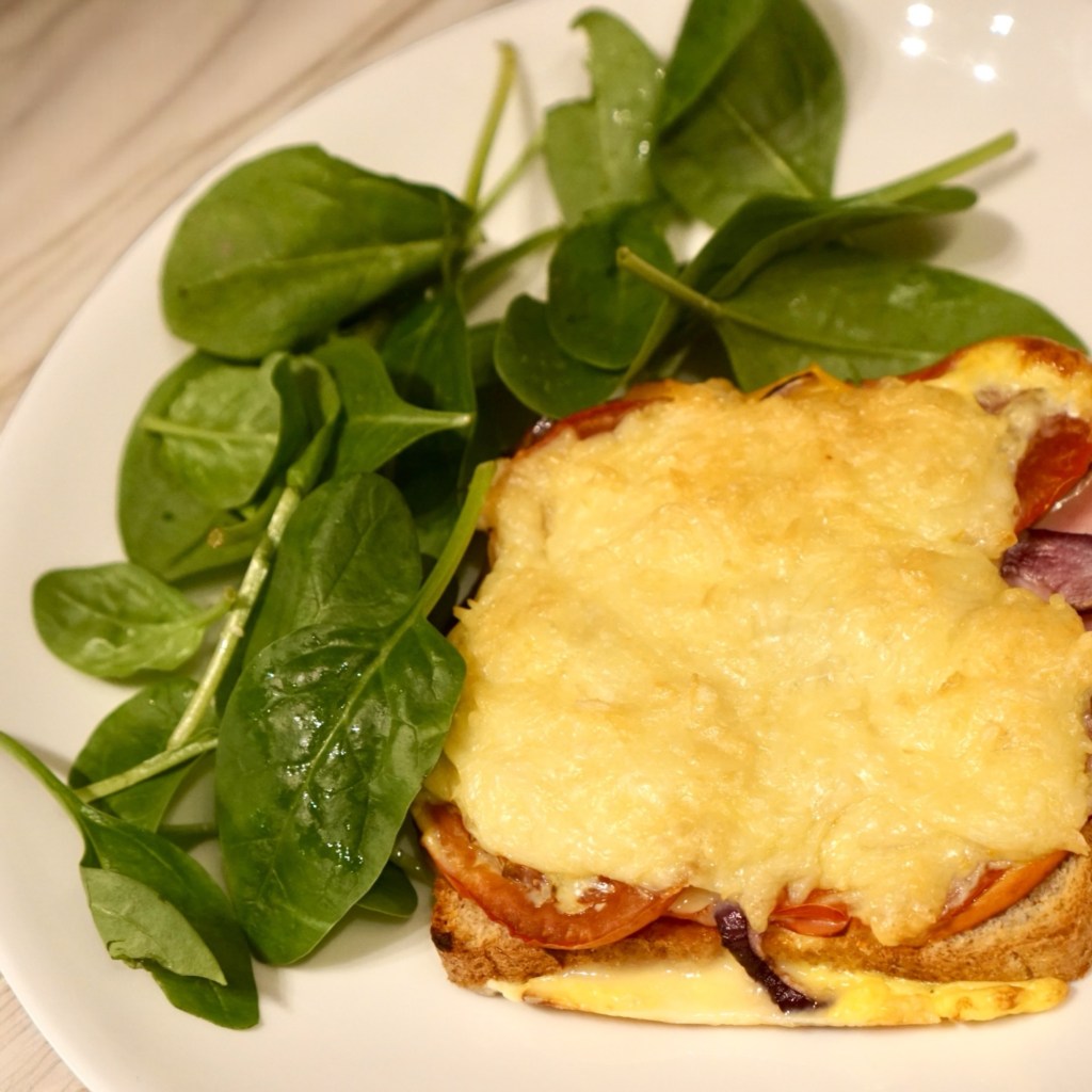 Open the tofu package and pat the surface dry using paper towels or a kitchen cloth. Slice the tofu into thin pieces. Spread butter or margarine on the bread slices. Add a thin layer of pesto or mustard on top. Arrange the halved pineapple slices and tofu pieces on the bread. Top with grated cheese. Bake in the middle rack of the oven at 200°C (390°F) for 10–15 minutes or until the toast is fully cooked and golden. You can add whatever vegetables you want and substitute ingredients with vegan products.