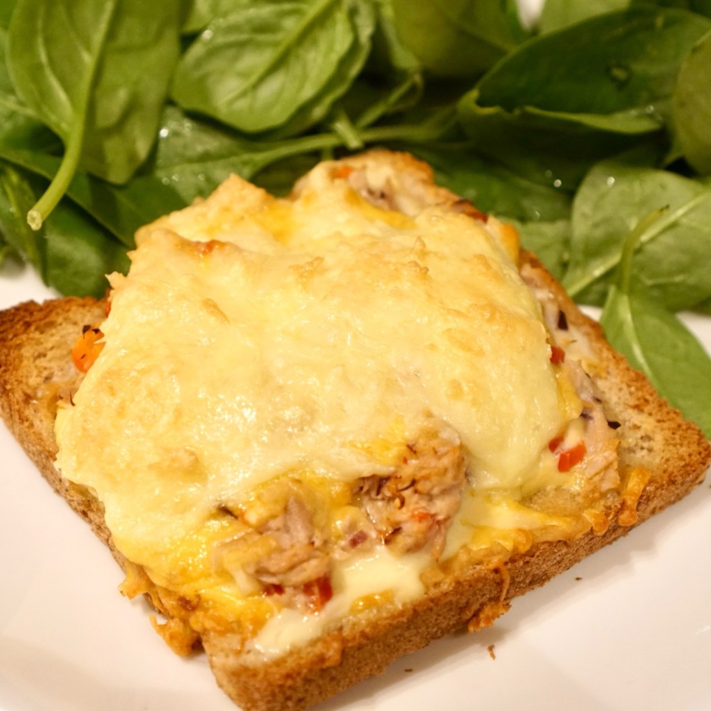 Mix all ingredients together. Place the slices of bread on a baking sheet lined with parchment paper. Divide the mixture evenly onto the bread slices and top with the cheese mixture. Bake as instructed above.